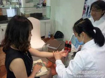 慈銘奧亞私人醫(yī)生在展會(huì)現(xiàn)場(chǎng)為參展者把脈